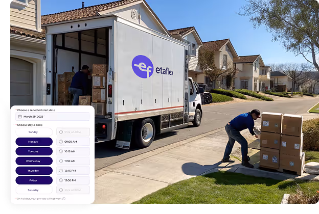 Setting up recurring delivery with EtaFlex is simple. Businesses choose their preferred frequency on the dashboard or via API integration. Our team supports onboarding, ensuring schedules match your operational needs while eliminating inefficiencies tied to manual booking processes.